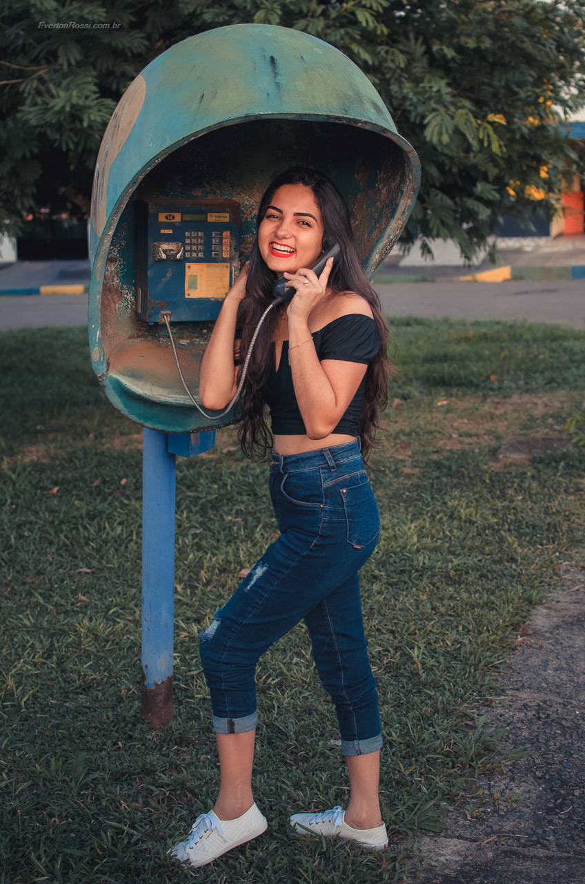 Um estilo de ensaio que permite ter mais fotos diferentes, porque todo lugar que via que dava uma foto, a gente ia e fazia. Rolou até foto no orelhão!